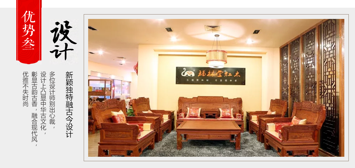 東陽市大聯福林堂紅木家具廠座落于素有“東方好萊塢”之稱的國家AAAAA級影視旅游基地橫店影視城, 是一家集開發(fā)、設計、生產、銷售、服務為一體的綜合型企業(yè)。本公司匯集一批具有豐富生產經驗的能工巧匠,具有豐富的紅木家具設計生產經驗。本公司產品主要選用紫檀、花梨、酸枝、雞翅等優(yōu)質紅木,并采用純天然蜂蠟飾面。經過蒸煮、脫脂、烘干、定型等多道工序嚴格處理,福林堂紅木始終嚴格秉承“質量第一”、“信譽至上”的經營理念,在繼承傳統工藝的基礎上,不斷創(chuàng)新,大力引進先進家具設備、烘干設備,實現了現代生產工藝與傳統表現手法的有機相融。